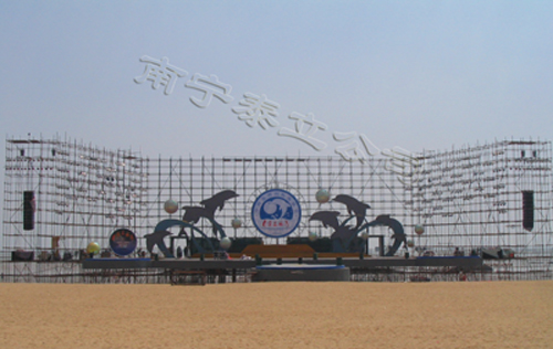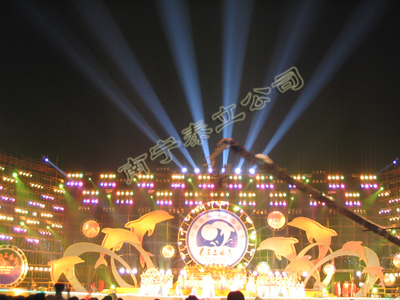 2004年首届钦州国际海豚艺术节开幕式晚会,南宁泰立灯光音响艺术科技有限公司担任晚会灯光音响制作与安装。